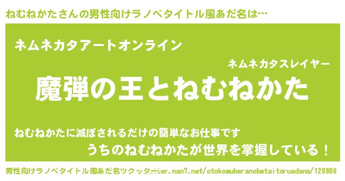 | ヒーロー風カッコイイあだ名 | 『仮面ネムダー』『スーパーネムネカタ』 |