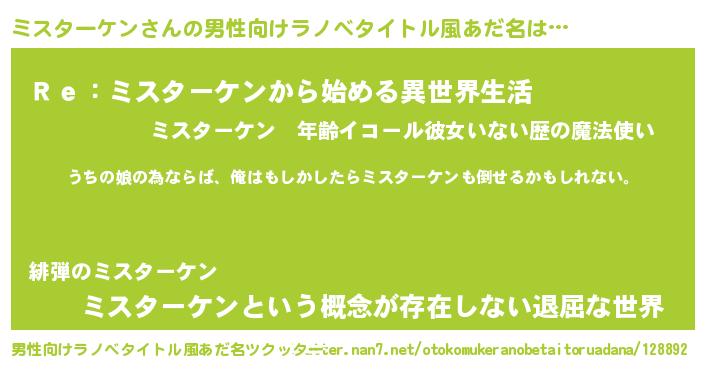 | ファンタジー風あだ名 | 『エターナルミスターケンー』 |