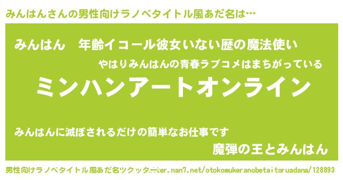 | 女子向けラノベタイトル風あだ名 | 『みんはん姫と円卓の騎士』 |