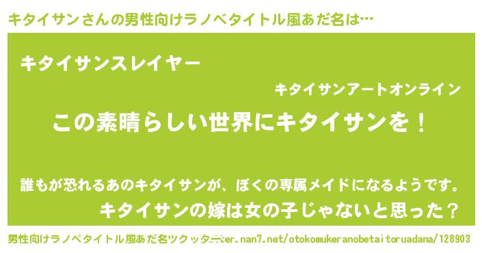 | 女子向けラノベタイトル風あだ名 | 『悪役キタイサンに転生したようですが、知った事ではありません』 |