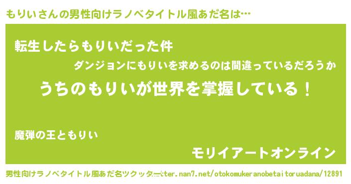 | 胡散臭い通販商品みたいなあだ名 | 『億万長者になれる水晶球…その名も「もりい」』 |