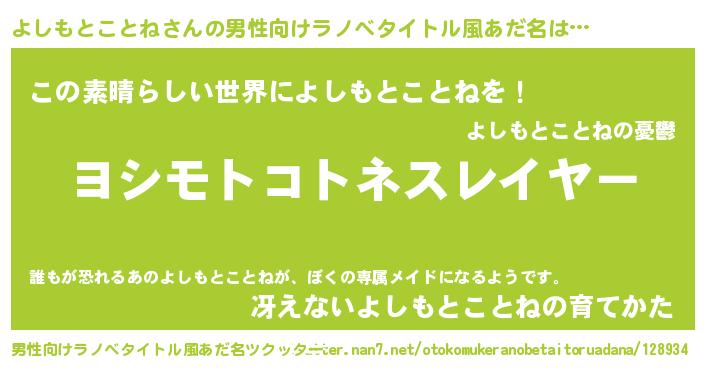 | ヘコむあだ名 | 『よしにゅー』『よしもとことね(爆)』 |