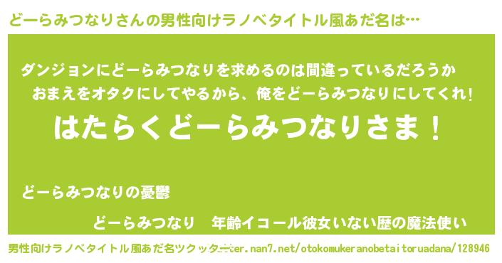 | 意味不明あだ名 | 『とにかく怪しいどーらみつなり』 |