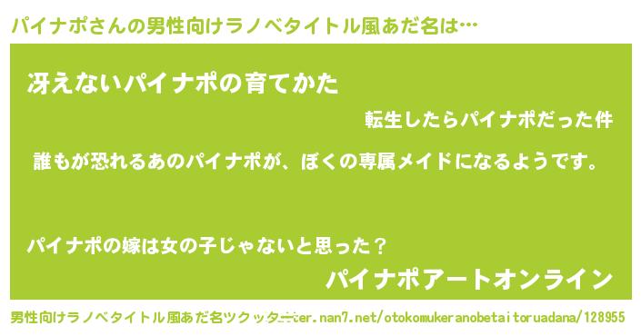 | 女子向けラノベタイトル風あだ名 | 『異世界でカフェパイナポを開店しました。』 |