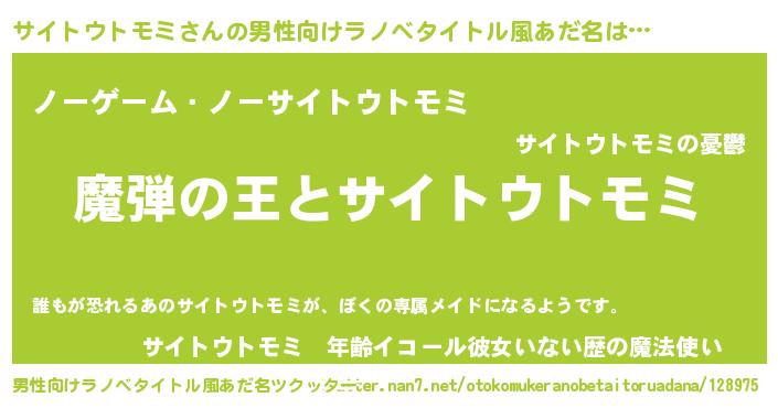 | 意味不明あだ名 | 『住所不定無職サイトウトモミ(93歳)』 |