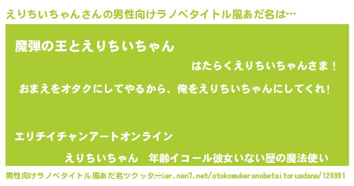 | 胡散臭い通販商品みたいなあだ名 | 『100人中100人が認めたマグネット磁石…その名も「えりちいちゃん」』 |