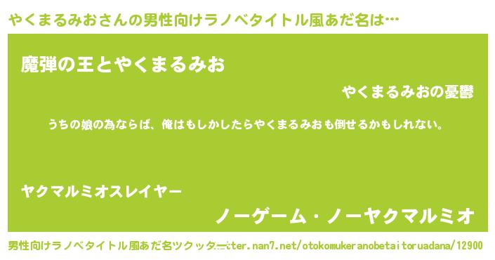 | 肩書あだ名 | 『やくまるみお総理大臣』 |