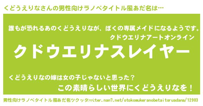| 胡散臭い通販商品みたいなあだ名 | 『絶対に幸福をもたらす健康食品…その名も「くどうえりな」』 |