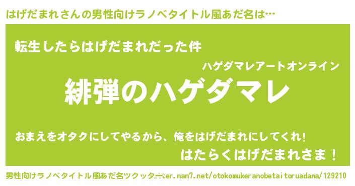 | 胡散臭い通販商品みたいなあだ名 | 『必ず成功する水晶球…その名も「はげだまれ」』 |