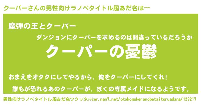 | 女子向けラノベタイトル風あだ名 | 『(仮)クーパーのやんごとなき事情』 |