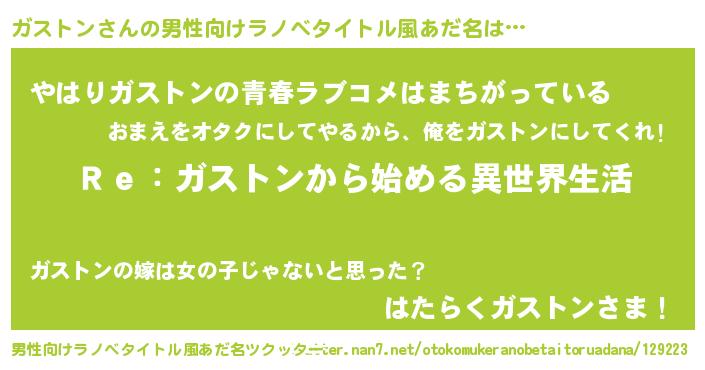| 女子向けラノベタイトル風あだ名 | 『ガストンストレイドッグス』 |