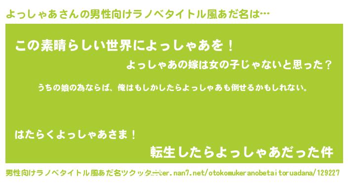 | ファンタジー風あだ名 | 『エターナルヨッシャアー』『ヨッフェル』 |