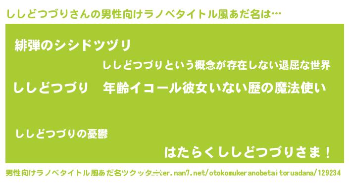 | ヘコむあだ名 | 『ししどつづり(笑)』『ししにー』 |
