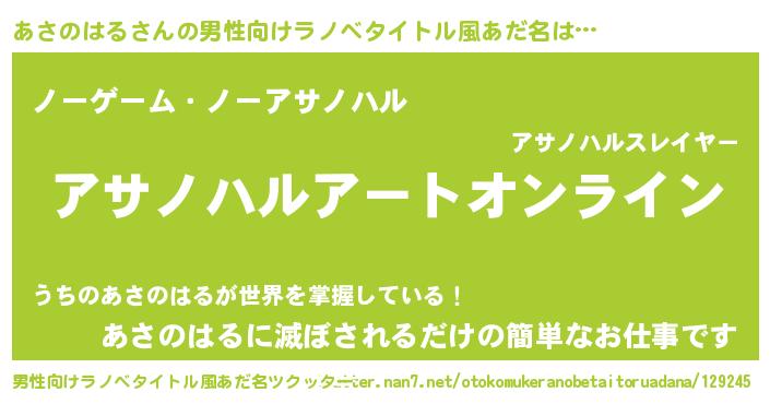 | 女子向けラノベタイトル風あだ名 | 『誰かこのあさのはるを説明してください! ~契約から始まるウェディング~』 |