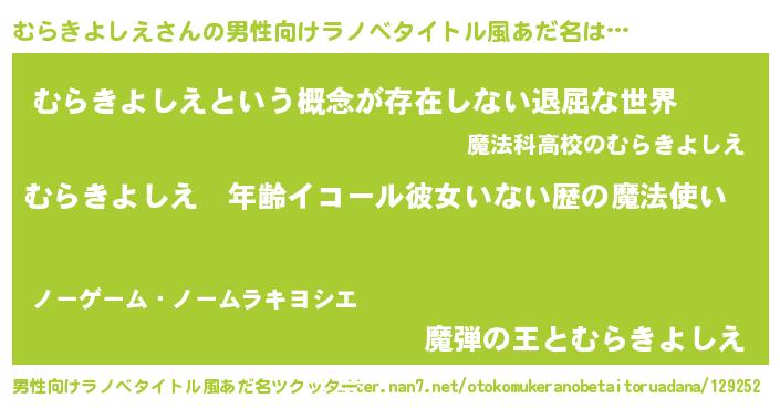 | 女子向けラノベタイトル風あだ名 | 『むらきよしえの玉の輿計画!』 |