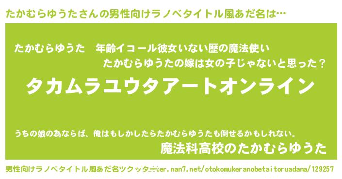 | 女子向けラノベタイトル風あだ名 | 『たかむらゆうた姫と円卓の騎士』 |