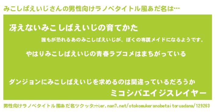| ファンタジー風あだ名 | 『エターナルミコシバエイジー』 |