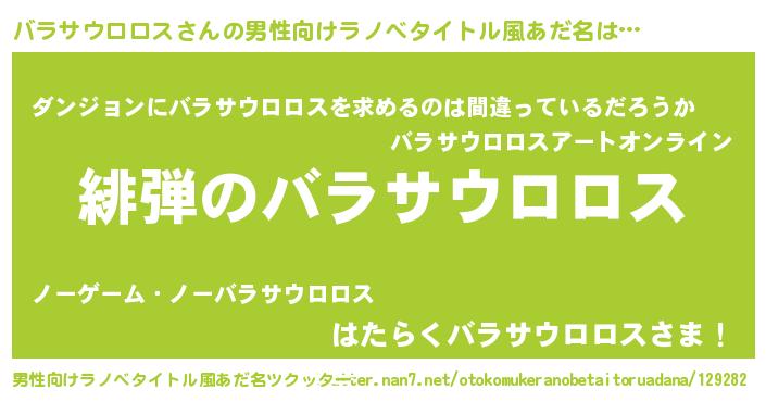 | 胡散臭い通販商品みたいなあだ名 | 『信頼と実績のサプリメント…その名も「バラサウロロス」』 |