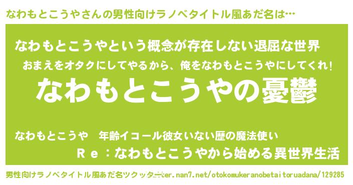 | ヒーロー風カッコイイあだ名 | 『スーパーナワモトコウヤ』 |