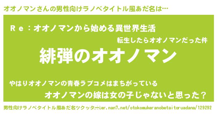 | 女子向けラノベタイトル風あだ名 | 『シンデレラオオノマン家の靴箱館』 |
