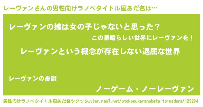 | 女子向けラノベタイトル風あだ名 | 『異世界で失敗しない100のレーヴァン』 |