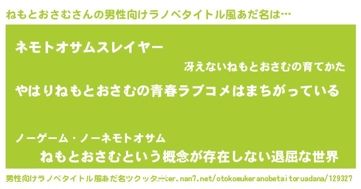 | 意味不明あだ名 | 『ねもとおさむフォーエバー』 |