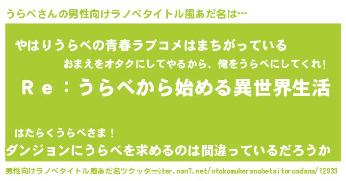 | 女子向けラノベタイトル風あだ名 | 『うらべストレイドッグス』 |