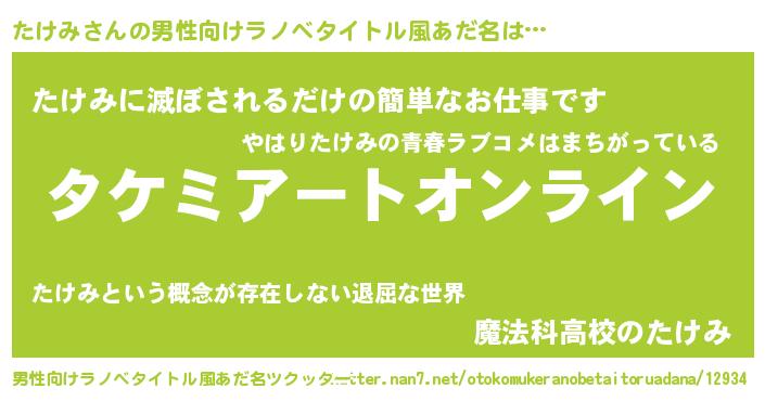 | 女子向けラノベタイトル風あだ名 | 『誰かこのたけみを説明してください! ~契約から始まるウェディング~』 |
