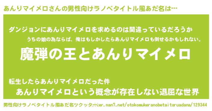 | 伝説のあだ名 | 『孤高の遊び人あんりマイメロ』 |