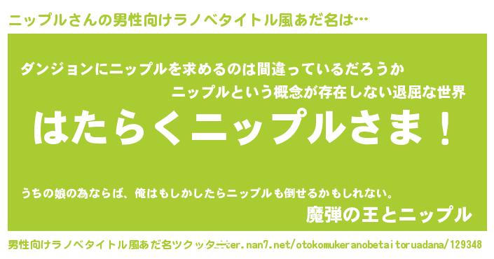 | 女子向けラノベタイトル風あだ名 | 『首の姫と首なしニップル』 |