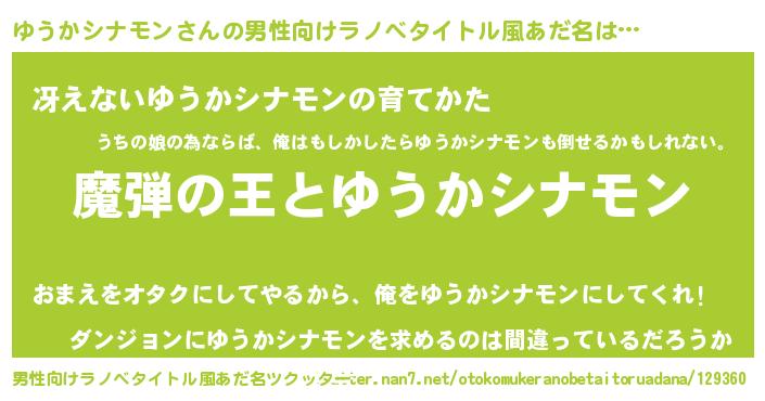 | 女子向けラノベタイトル風あだ名 | 『乙女ゲームの破滅フラグしかない悪役ゆうかシナモンに転生してしまった…』 |