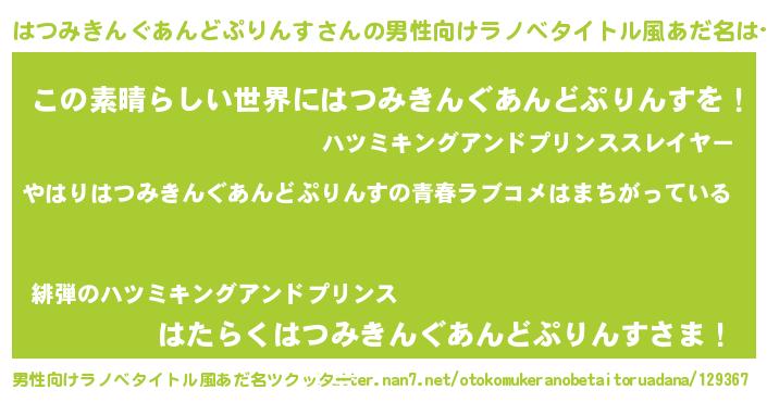 | 意味不明あだ名 | 『はつみきんぐあんどぷりんすフォーエバー』 |