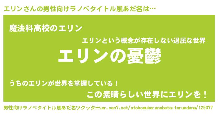 | 女子向けラノベタイトル風あだ名 | 『(仮)エリンのやんごとなき事情』 |