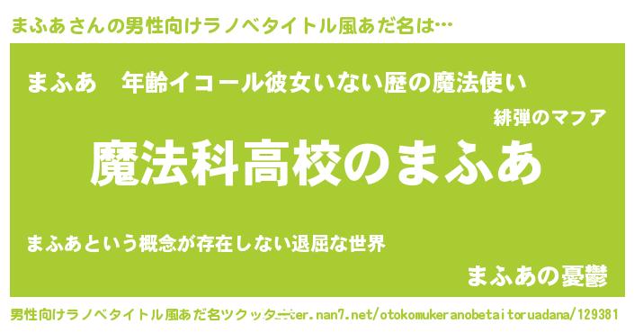 | 女子向けラノベタイトル風あだ名 | 『まふあなんてお断りですっ。』 |