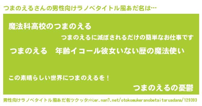 | 胡散臭い通販商品みたいなあだ名 | 『芸能人もオススメする高麗人参…その名も「つまのえる」』 |