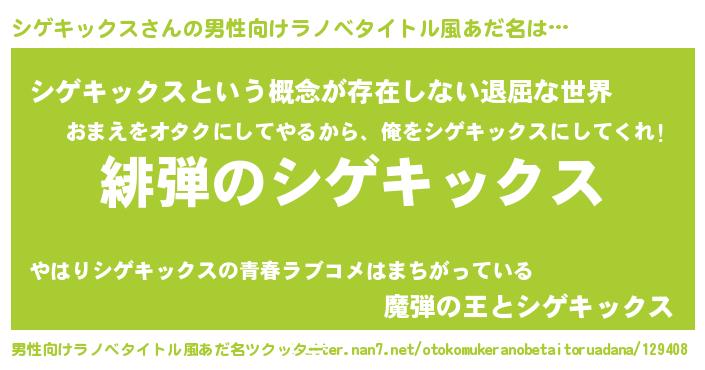 | 意味不明あだ名 | 『永久保存シゲキックス』 |