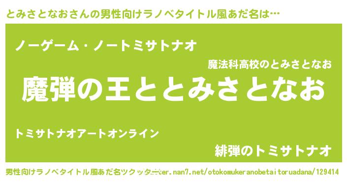 | 女子向けラノベタイトル風あだ名 | 『とみさとなおが死なない童話 林檎のとみさとなおの診療簿』 |