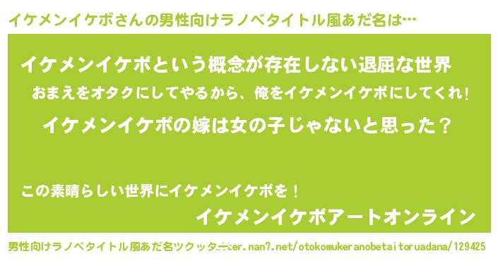 | 萌えアニメ | 主人公(イケメンイケボ)のあだ名『 イケさん』 |