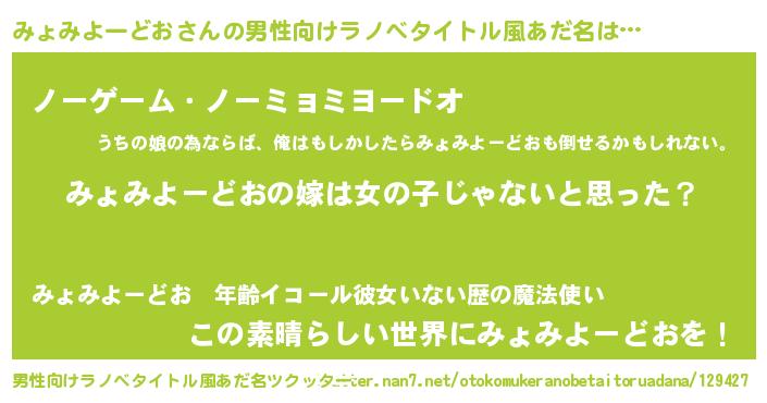 | 女子向けラノベタイトル風あだ名 | 『みょみよーどお様がみてる』 |