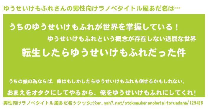 | 欧米人風あだ名 | 『トリンドルゆうせいけもふれ』 |