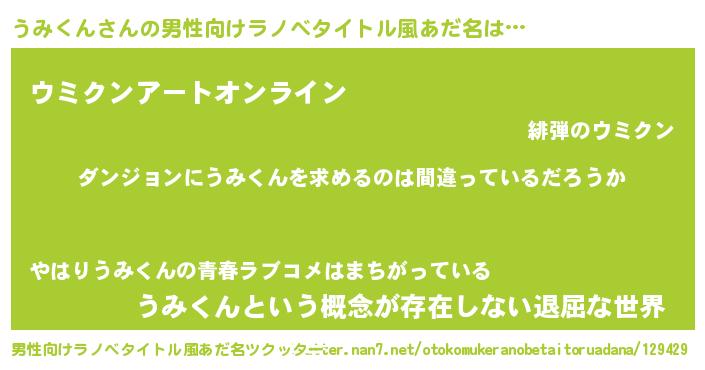 | ヘコむあだ名 | 『うみっ子』『うみもー』『なまこ酢』 |