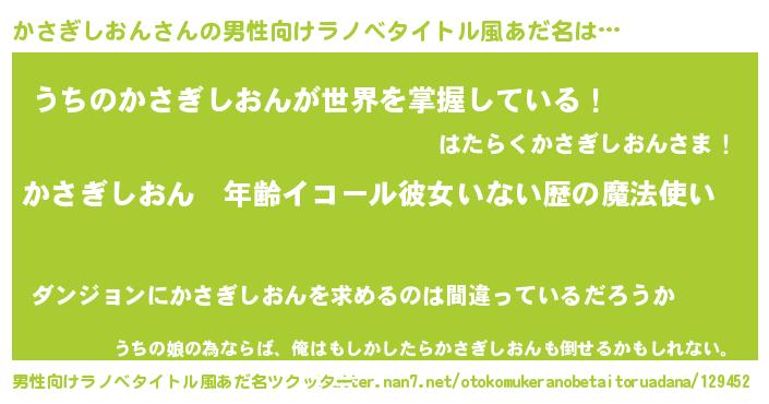 | 女子向けラノベタイトル風あだ名 | 『かさぎしおんの玉の輿計画!』 |