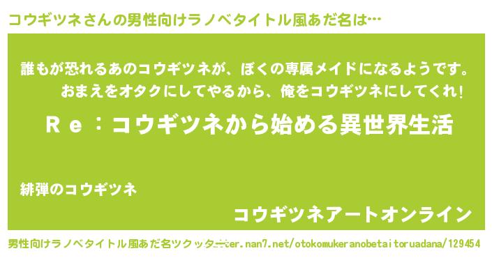 | 意味不明あだ名 | 『自称コウギツネ』『永久保存コウギツネ』 |