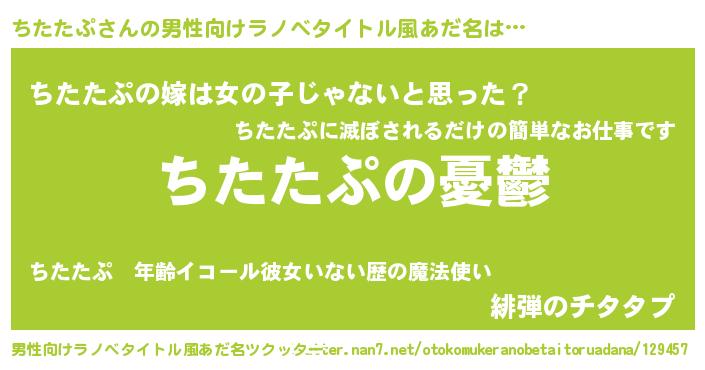 | 女子向けラノベタイトル風あだ名 | 『(仮)ちたたぷのやんごとなき事情』 |