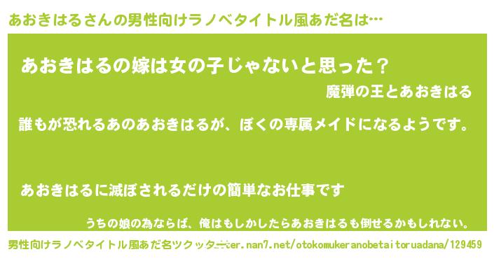 | 女子向けラノベタイトル風あだ名 | 『異世界でカフェあおきはるを開店しました。』 |