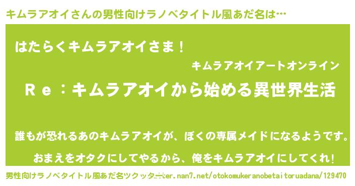 | 女子向けラノベタイトル風あだ名 | 『キムラアオイストレイドッグス』 |