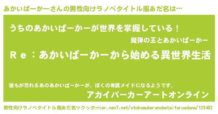 | 女子向けラノベタイトル風あだ名 | 『闇のあかいぱーかー』 |