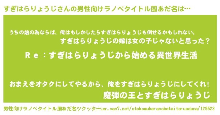 | 女子向けラノベタイトル風あだ名 | 『すぎはらりょうじストレイドッグス』 |