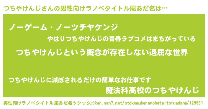 | 胡散臭い通販商品みたいなあだ名 | 『絶対に幸福をもたらす健康食品…その名も「つちやけんじ」』 |