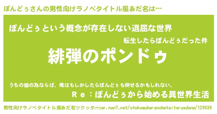 | ヘコむあだ名 | 『ぽんどぅ(遠い目)』『豆乳』 |